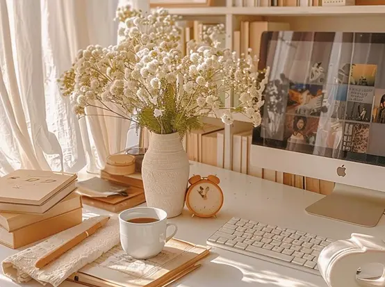 Tabletop Decor: Add one or two elegant decor pieces, such as candles, a vase, or a potted plant, to liven up the tabletop. Including a few art books or magazines can reflect your personal interests. Avoid overcrowding to keep it looking tidy.