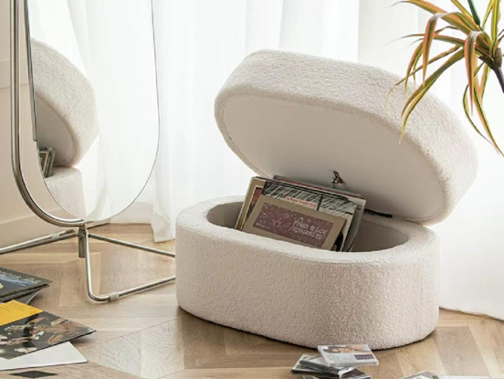 Choose an ottoman in a fabric or color that complements your interior design. Whether placed at the foot of your bed, in your living room, or in an entryway, a storage ottoman adds both practicality and style.