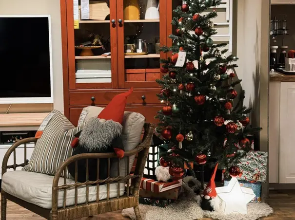 If you have a small space, use two half- or quarter-size Christmas trees in place of a full-size Christmas tree. Their smaller footprint means you won’t have to rearrange your already-full room of furniture to accommodate a full-size tree. And if you have a big room, you can add the two small trees in addition to a full-size one to make the room feel full and cozy.